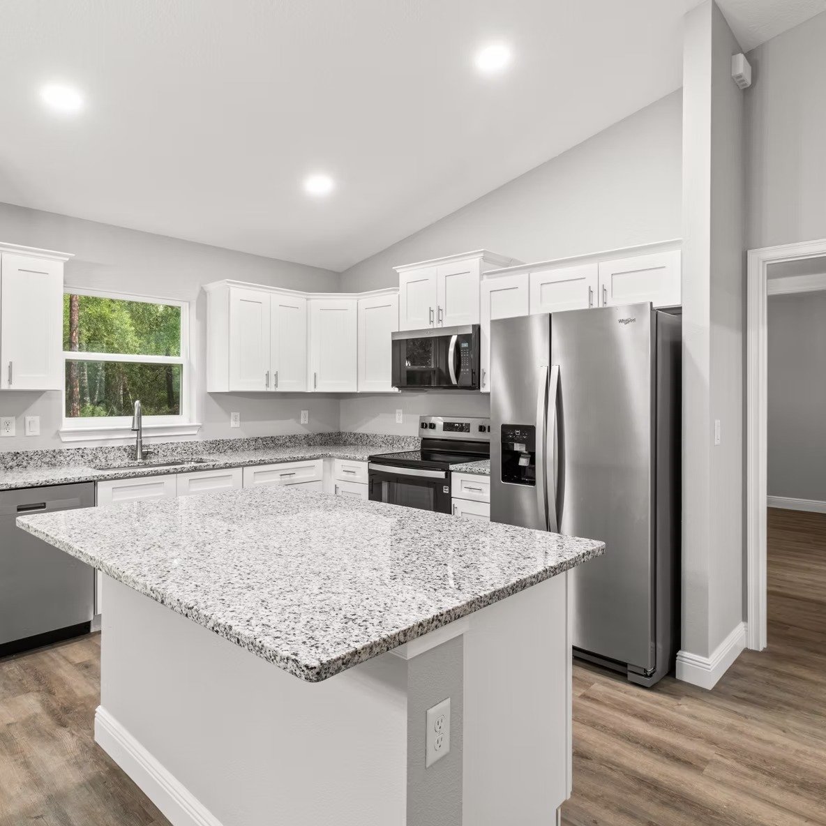 The Daisy Model presents an exquisite blend of elegance and practicality, designed to cater to the modern family’s needs. This charming home features three cozy bedrooms and two well-appointed bathrooms, ensuring ample space for comfort and privacy. A spacious two-car garage offers convenient vehicle storage, while the interior boasts luxurious granite countertops that add a touch of sophistication to the kitchen. The entire home is adorned with LVP flooring, ensuring durability and ease of maintenance throughout.