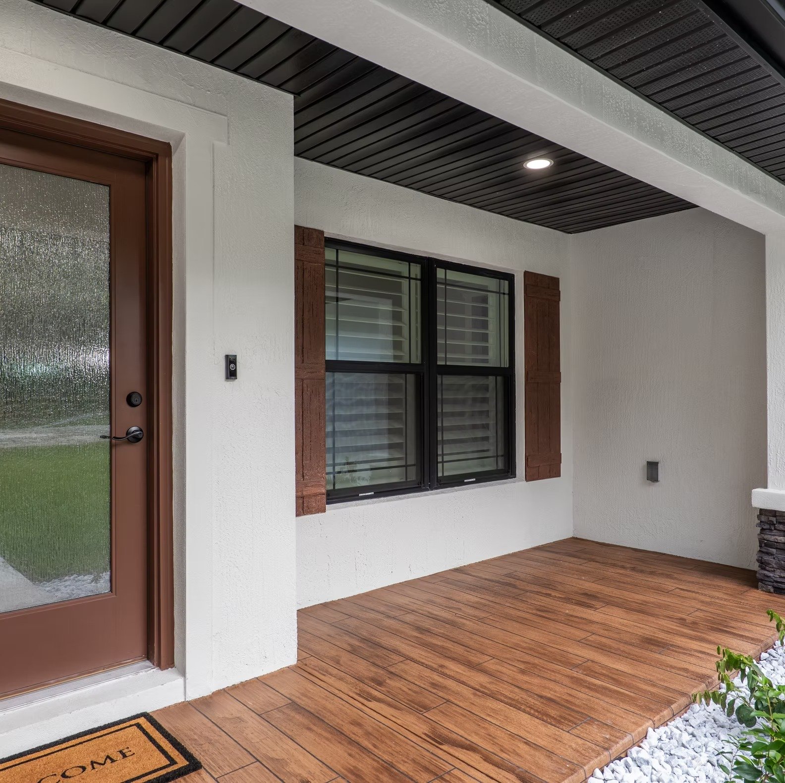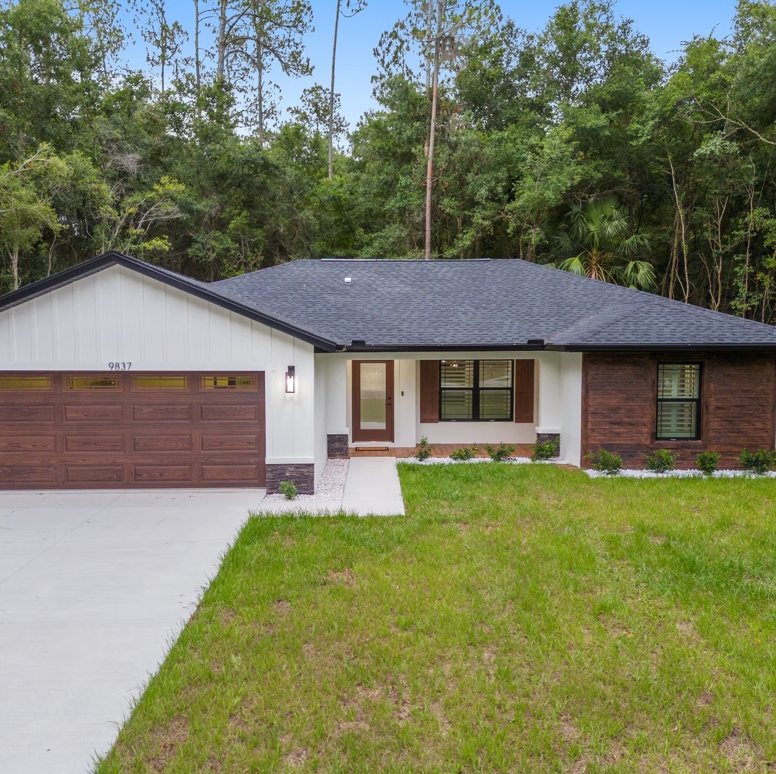 Architectural shingles adorn the roof, contributing to the home’s aesthetic charm and longevity.