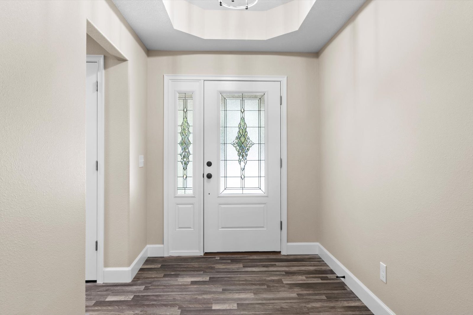 Sophisticated foyer with tray ceiling