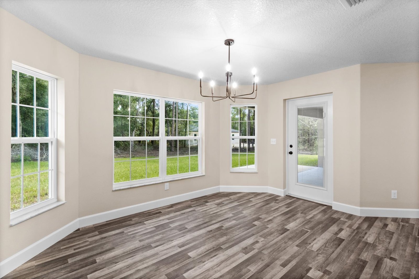 A large corner dining room perfect for entertaining guests while enjoying the backyard view