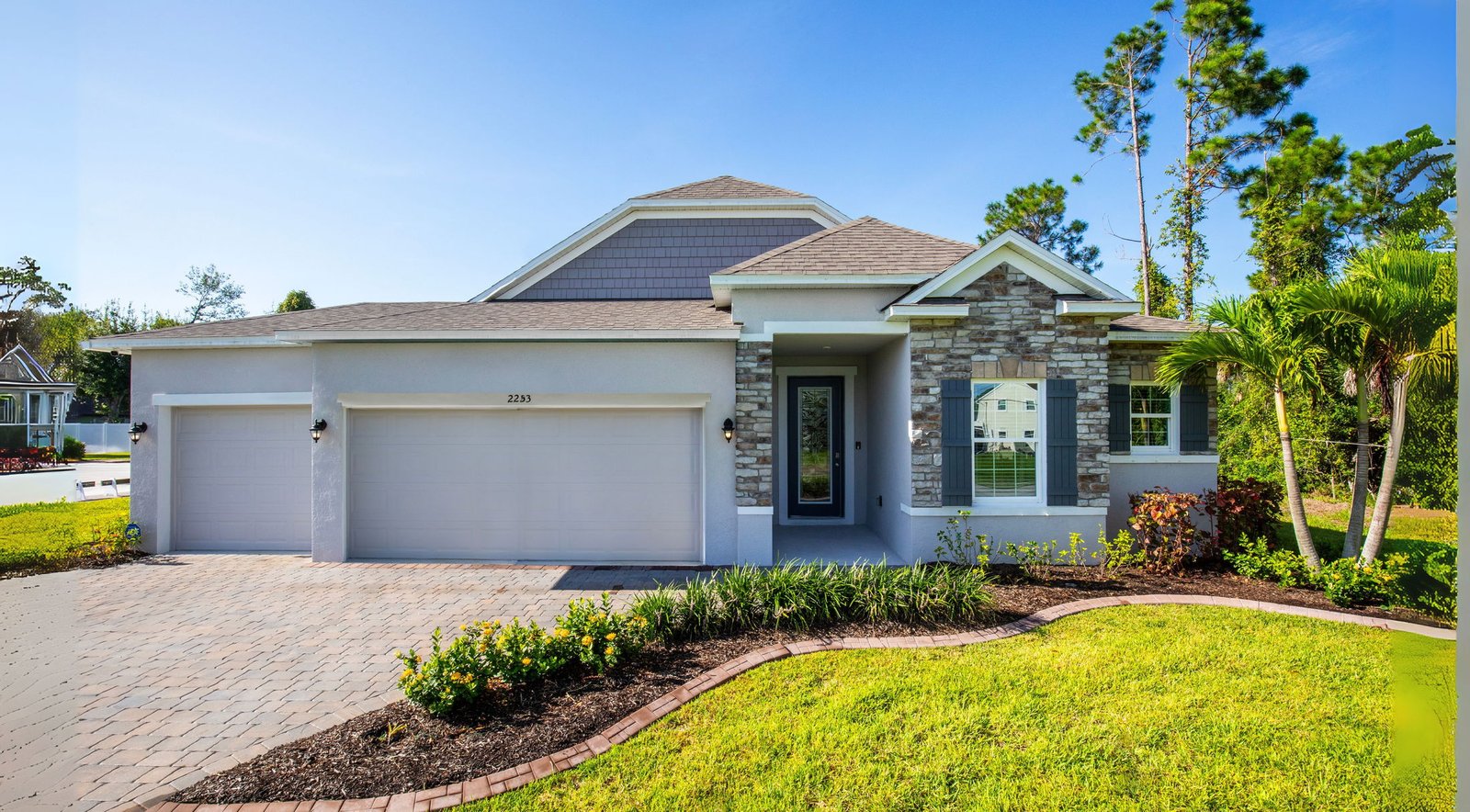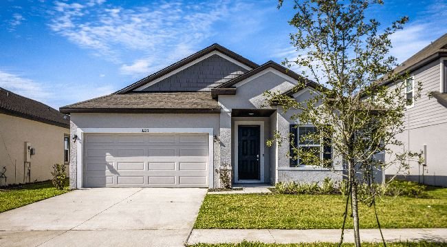 The charming three- to four-bedroom Drexel features a decorative masonry finish with an optional stone front, blending classic curb appeal with modern comfort.